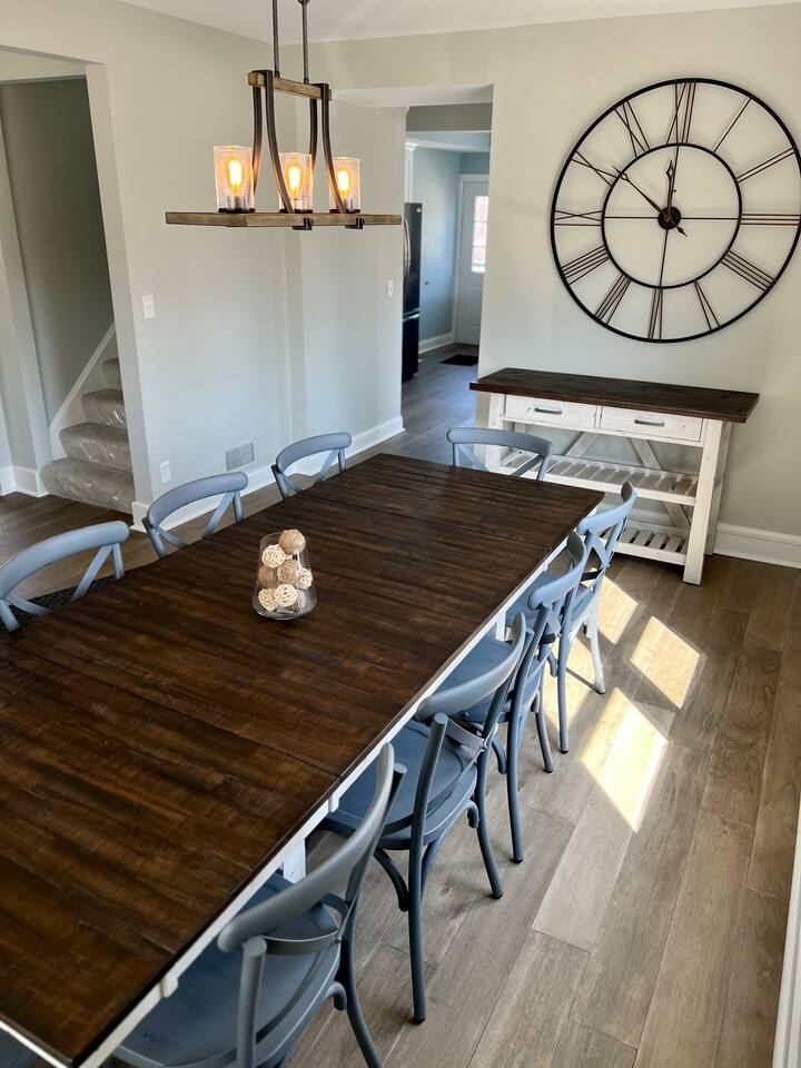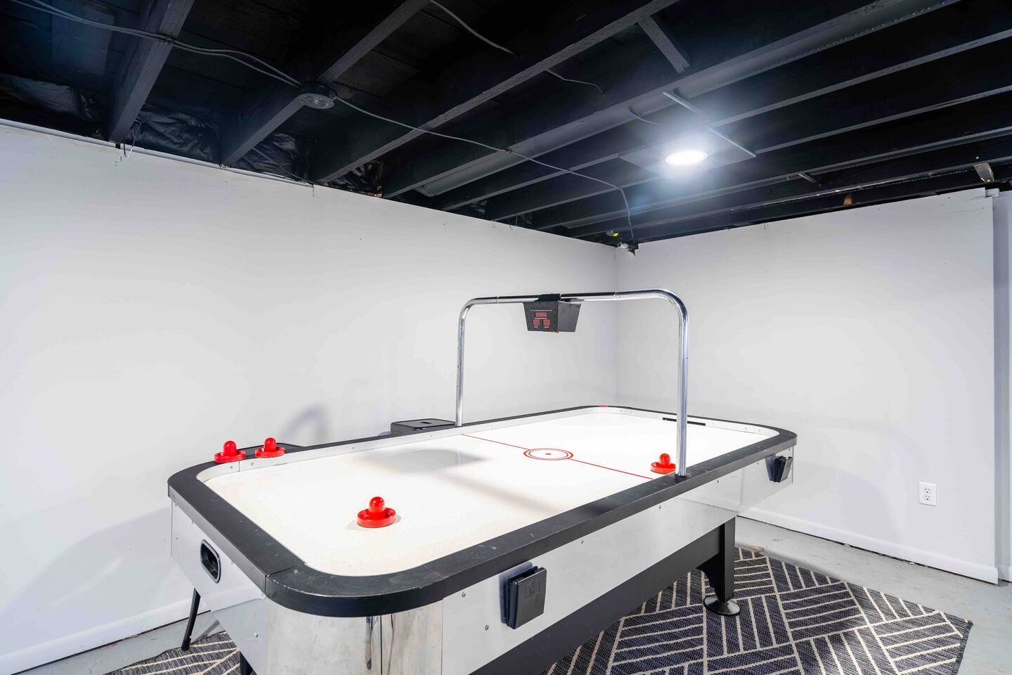 Discover the charm of our welcoming abode, which boasts five elegantly designed bedrooms: an upper-level master suite with a plush king bed, three cozy queen beds also on the upper floor, and a secluded queen bed on the lower level, all ensuring serene comfort. The dining room, with its large 12-person table, serves as the focal point for memorable meals and socializing. Relax in the spacious living room, featuring two ample couches, and enjoy the convenience of a fully equipped kitchen, ready for your culinary exploits. The home offers three full bathrooms, each with a shower, and an upstairs bathtub for a leisurely soak. Entertainment is at your fingertips in the expansive game room, and the outdoor patio area, highlighted by a 6-8 person hot tub, promises the perfect end to your day.